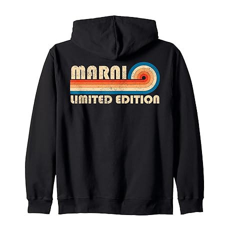 First Name Graphic Designs 70s 1970s Retro Style MARNI First Name Funny Retro Vintage Birthday Zip Hoodie
