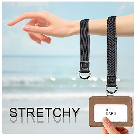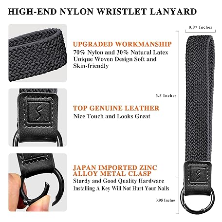 Fishent Stretchy Key Chain, Cute Keychain Wristlet, Upgraded Woven Wrist Lanyard for Keys, Key Chains for Women Men Car Keys ID Badges Card Wallet Phone, Black