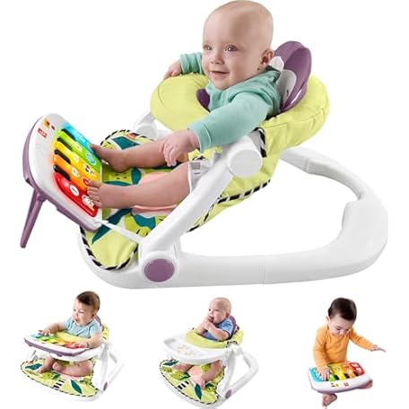 • Fisher-Price Portable Baby Chair Kick & Play Deluxe Sit-Me-Up Seat with Piano Learning Toy & Tray for Infants to Toddlers, Purple Monkey