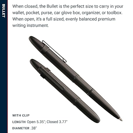 Thông tin sản phẩm Fisher Space Pen Bullet Pen, Ballpoint, Brass, Matte Black, Black Ink, Pocket Clip