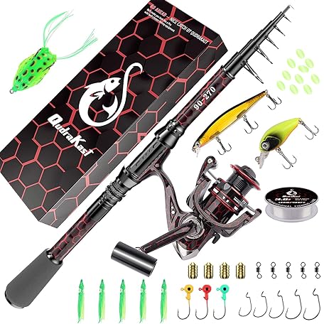 Fishing Rod and Reel Combos, Unique Design with X-Warping Painting, Carbon Fiber Telescopic Fishing Rod with Reel Combo Kit with Tackle Box, Best Gift for Fishing Beginner and Angler