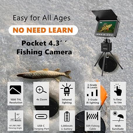 [FishPRO® 2026 Upgrade] The PRO in Underwater Fishing Camera -4.3'' Ice Fishing Camera Underwater(NO Need Learn), 1000TVL, Ice Fish Gift for Men, Ice Fish Finder for Boat Fish w/IR/USB-C/5,000mAh/50ft