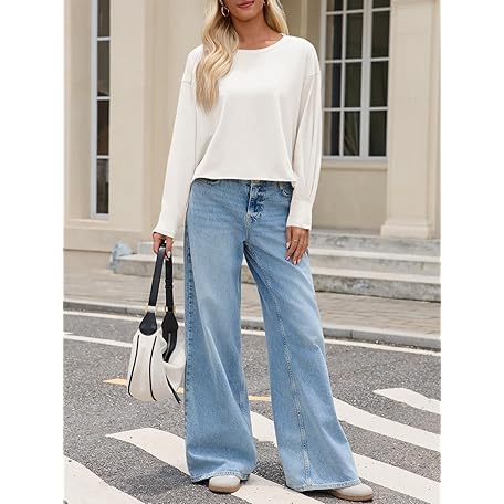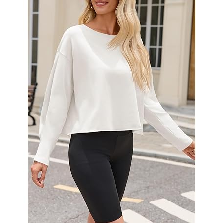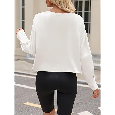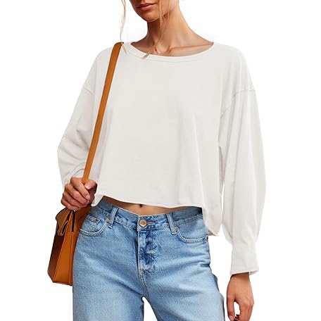 • Fisoew Womens Long Sleeve Crop Tops Loose Fit Crew Neck Oversized Cropped Tshirts 2025 Casual Workout Tee Shirt Tops
