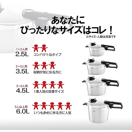 Thông tin sản phẩm Fissler 622-412-06-070-A Vitabit Premium Pressure Cooker, 1.1 gal (6 L), Gas Flame and Induction Compatible, For 5 People, 3 Pressure Settings, Made in Germany, Silver