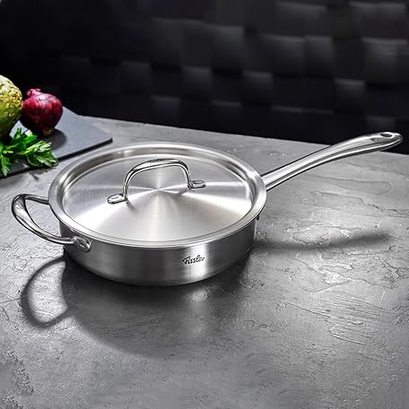 Sản phẩm Fissler M5 Pro-Ply 5-ply Stainless Steel Sauté Pan, 3 Quart, with Metal Lid đang được bán với giá ưu đãi là $337.8455 tại nước Mỹ.