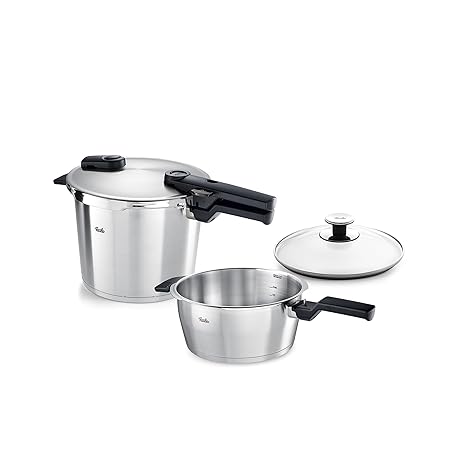 Thương hiệu Fissler là cái tên nổi tiếng được rất nhiều khách hàng trên thế giới chọn lựa. Với kiểu dáng đẹp mắt, sang trọng, sản phẩm Fissler Vitaquick Premium 3 Piece Set, 3.7 Quart and 6.3 Quart Pressure Cooker with Glass Lid là sự lựa chọn hoàn hảo nếu bạn đang tìm mua một món cho riêng mình.