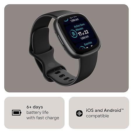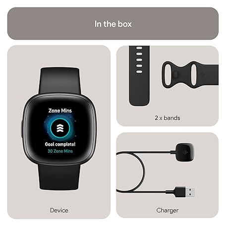 Thông tin sản phẩm Fitbit Versa 4 Fitness Smartwatch with Daily Readiness, GPS, 24/7 Heart Rate, 40+ Exercise Modes, Sleep Tracking and more, Black/Graphite, One Size (S & L Bands Included)