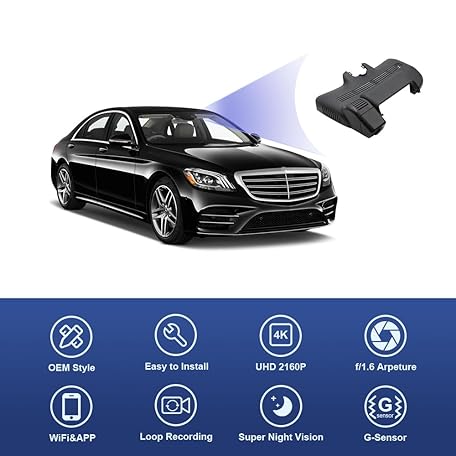 Fitcamx 4K Dash Cam for 2013-2020 Mercedes-Benz S-Class 400 450 550 550e 560 560e 600 Sedan Coupe Hybrid (HD2-6047/W221), OEM Look, 2160P UHD Video, Loop Recording WiFi, G-Sensor, Plug&Play, 64GB card