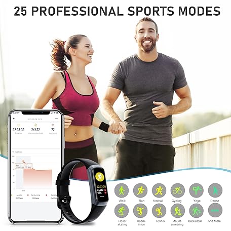 Thông tin sản phẩm Fitness Tracker with 24/7Heart Rate, Blood Pressure, Sleep Tracking, Calorie, Activity Tracker with 1.1" AMOLED Color Screen, Waterproof Step Tracker for Android iPhones Women Men