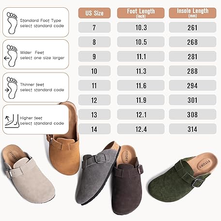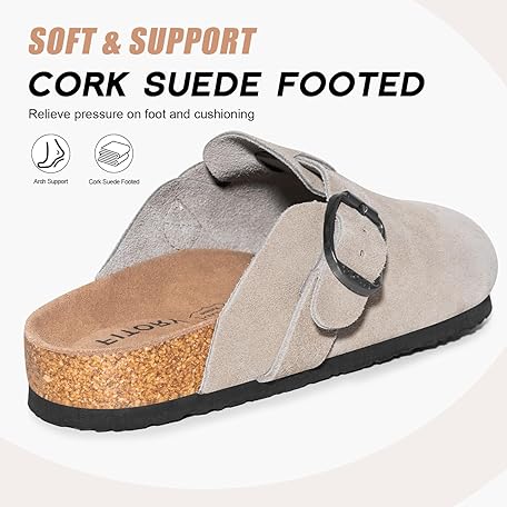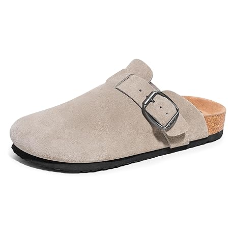 • FITORY Mens Suede Clogs with Arch Support,Leather Cork Footed Mules Size 7-14