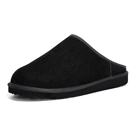 FITORY Men’s Winter Genuine Leather Slippers, Comfy Memory Foam Suede Shoes with Warm Fleece-Lined for Indoor and Outdoor Size 7-14