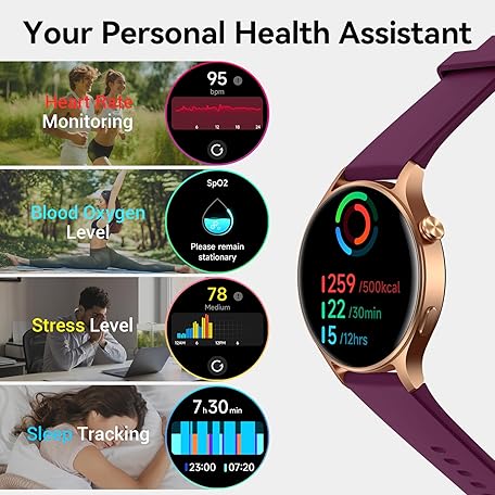 Fitpolo Smart Watch for Women,1.3" AMOLED Touchscreen Fitness Tracker, Make/Answer Calls, Heart Rate SpO2 Monitor,IP68 Waterproof,Sleep Activity Tracking Smartwatch for Android Phones iPhone (Purple)