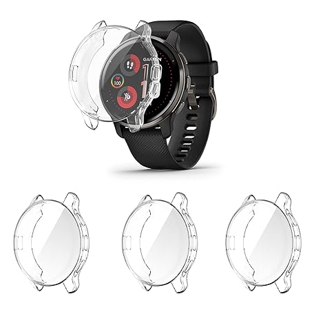 FitTurn Protective Case Compatible with Garmin Venu2 Venu 2 Plus Screen Protector Case Cover for Garmin Venu 2 Plus 43mm Soft Ultra-Slim Protector Bumper (3Pack Clear)