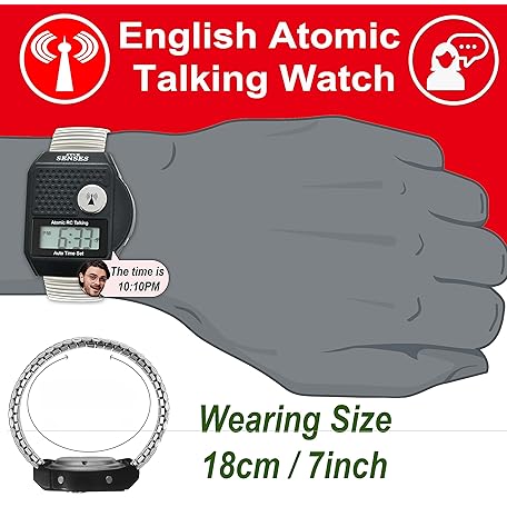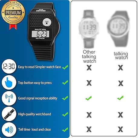 Thông tin sản phẩm FIVE SENSES - English Atomic Talking Watch, Easy to use for Seniors Blind Men Women, Loud Talking Watch with Sound for Vision Impaired, Watches for Elderly Women, Blind People Products 1095