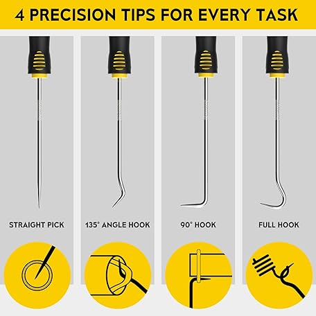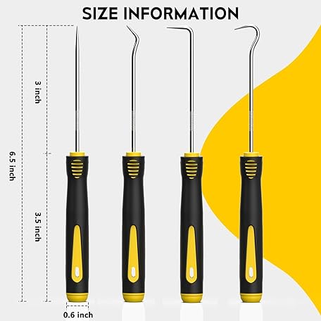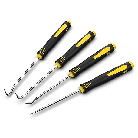 FJCTER Precision Hook and Pick Set, 4-Piece Automotive O Ring Pick Set, Mechanic Pick Tools with Ergonomic Handle, Knurled Shaft for Automotive, Electronics, Gunsmith Tools