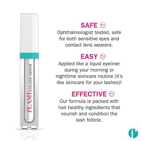Thông tin sản phẩm fLASH Eyelash Serum for Long, Curled Natural Lashes - Enhances & Strengthens, Safe & Effective Formula for Contact Wearers & Sensitive Eyes, 3 Month Supply - 2mL (0.07 Fl Oz)