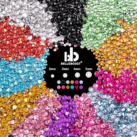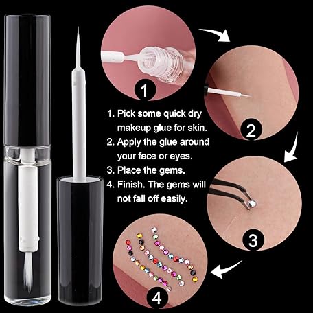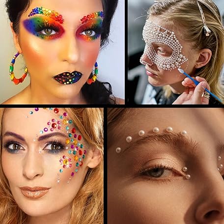 Flat Back Rhinestone+Half Round Pearl Kits Colorful Rhinestones+White&Beige Pearls with Quick Dry Makeup Glue+Picker Pencil+Tweezer for Nail Art and Face Make-up