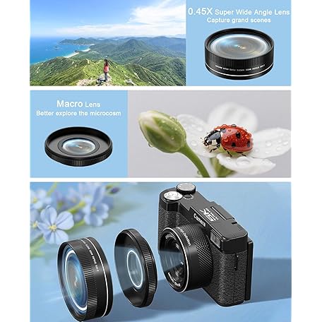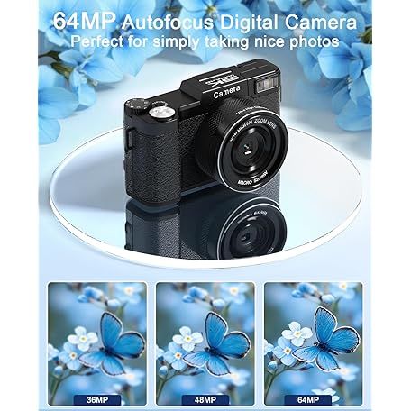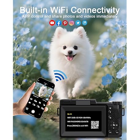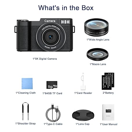 Thông tin sản phẩm FLATIC Digital Camera with WiFi, 5K 64MP Cameras for Photography with 180° Flip Screen for YouTube, 18X Zoom Autofoucs Vlogging Camera with 64GB Card, Wide & Macro Lens, 2 Batteries, Card Reader