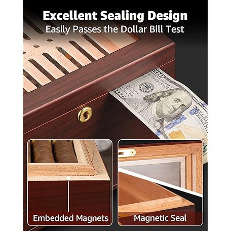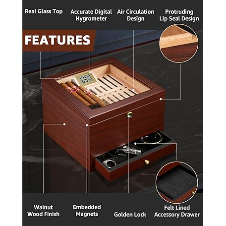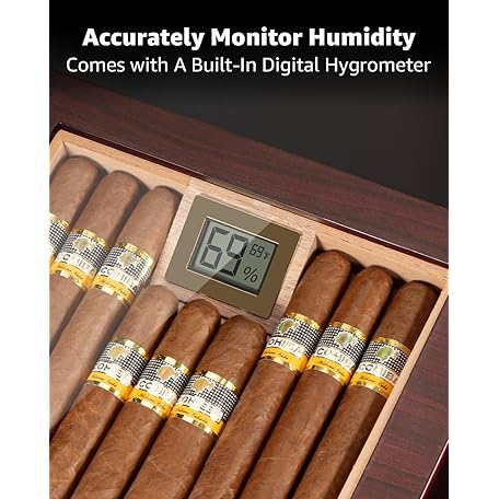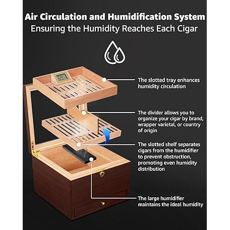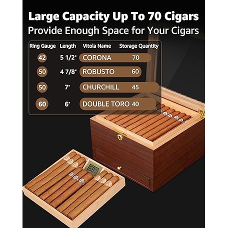 Thông tin sản phẩm Flauno Cigar Humidor with Lock, Air Circulation System, up to 70 Cigars, Spanish Cedar Wood, Accurate Digital Hygrometer, Drawer, Humidifier, Divider, Gift for Cigar Lovers