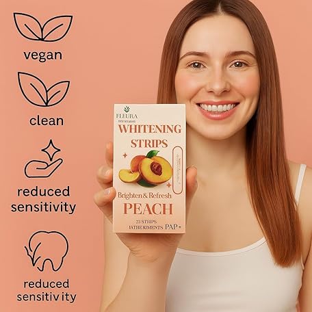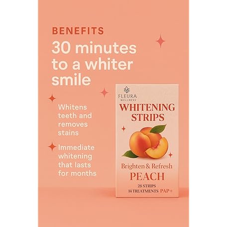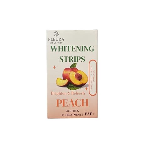 • Fleura Wellness Pap Teeth Whitening Strips – Peach and Watermelon Flavor | Enamel-Safe, Sensitivity-Free Whitening, Gentle Daily Use, 28 Strips (14 Treatments) (Peach)