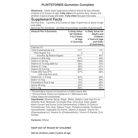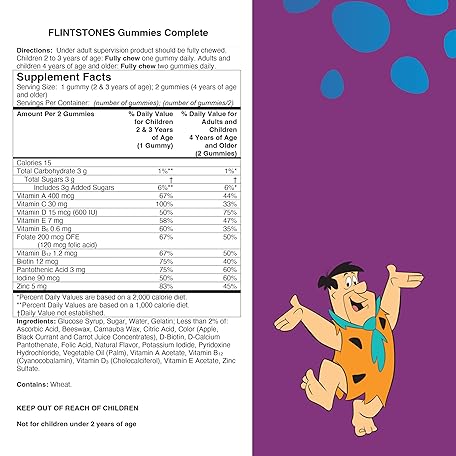 Thông tin sản phẩm Flintstones Vitamins Complete Gummies, Kids Vitamins with Vitamin C for Toddlers and Children, Kids Multivitamin with Vitamin A, B6, B12, E & Zinc, 180 Count