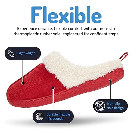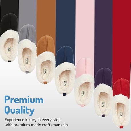 • Floopi House Slippers for Women, Fur Lined Clog Womens Slippers Cozy Memory Foam with Indoor & Outdoor Anti Skid Sole