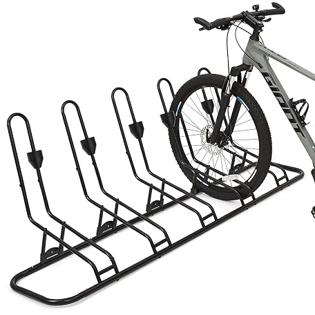 Floor Bike Rack for 5 Bikes, Safeguard Disc Brakes & Derailleurs Design, Waterproof Bicycle Stand Indoor/Outdoor/Garage Use, Fits 12"-29" Tires, Upgraded 0.63" Steel Tubes for Stability