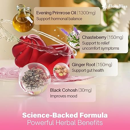 Sản phẩm FloraBliss 120 Evening Primrose Oil Gummies | 1500mg | with Black Cohosh, Chasteberry, Ginger Extract for Daily Women's Wellness Support | Vegan, Non-GMO, Sugar-Free đang được bán với giá ưu đãi là $27.2391 tại nước Mỹ.