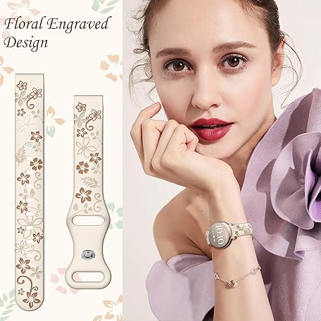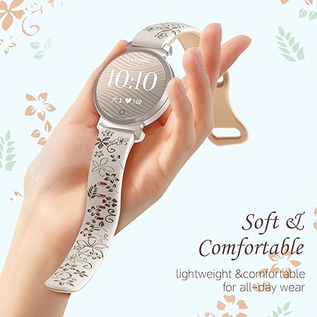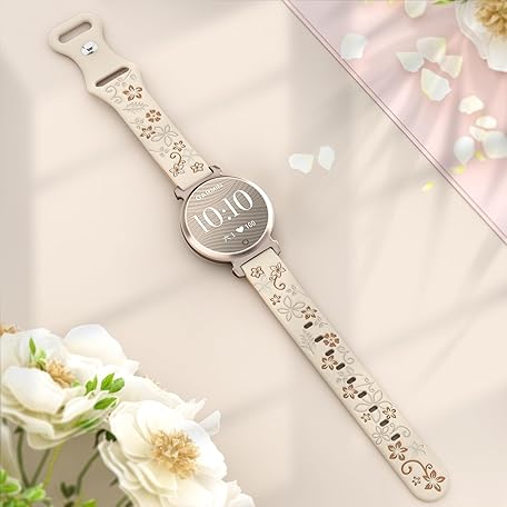 Floral Band Compatible with Garmin Lily 2, 14mm Soft Silicone Cute Women Two-Tone Flower Sport Strap Quick Release Replacement Adjustable Wristband for Lily 2 Active/2 Classic Smart Watch Accessory