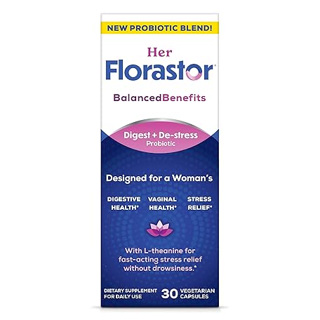 Florastor Probiotics for Women, Digest and De-Stress, Probiotics for Digestive Health, Vaginal Probiotic, and L-Theanine for Mind and Body Wellness, 30 Capsules