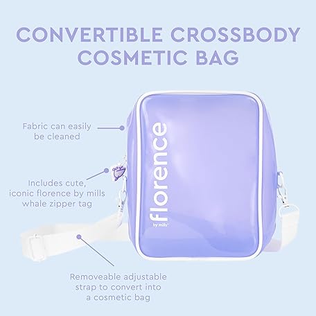 Thông tin sản phẩm florence by mills Convertible Crossbody Cosmetic Bag, Clear Puple,Removable Adjustable Strap