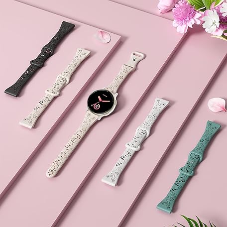 Flower Engraved Slim Silicone Watch Bands Compatible with Garmin Vivoactive 6 /Vivoactive 5/3/3 Music, 20mm Thin Sport Soft Strap for Garmin Venu 2 Plus/Venu Sq/Forerunner 165/55/245