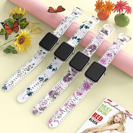 Sản phẩm Flower Lace Band Compatible with Apple Watch Band 40mm 44mm 46mm 41mm 45mm 38mm 42mm 49mm Women, Soft Silicone Floral Print Sport Replacement Strap for iWatch Series Ultra 11 10 9 8 7 6 5 4 3 2 1 SE đang được bán với giá ưu đãi là $8.6001 tại nước Mỹ.