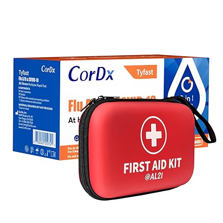 Flu A/B & COVID-19 Rapid Test (10-Pack) and First Aid Kit Bundle