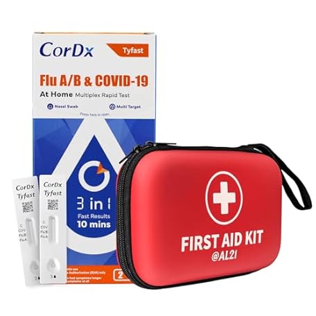 Flu A/B & COVID-19 Rapid Test (2-Pack) and First Aid Kit Bundle