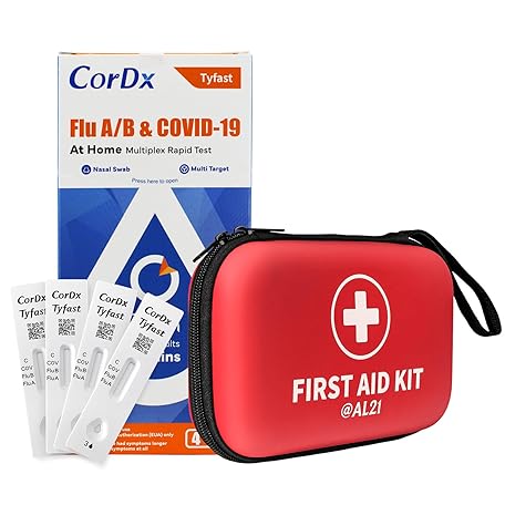 Flu A/B & COVID-19 Rapid Test (4-Pack) and First Aid Kit Bundle
