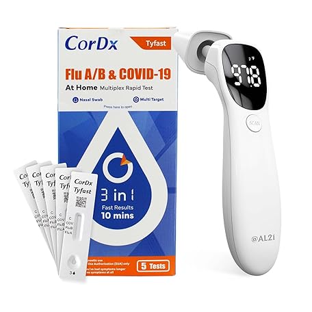 • Flu A/B & COVID-19 Rapid Test (5-Pack) and Infrared Thermometer Bundle