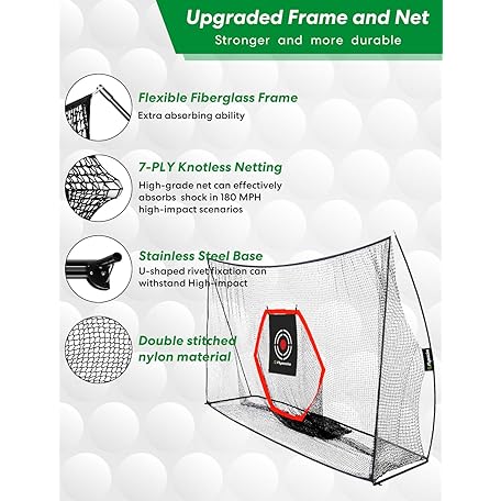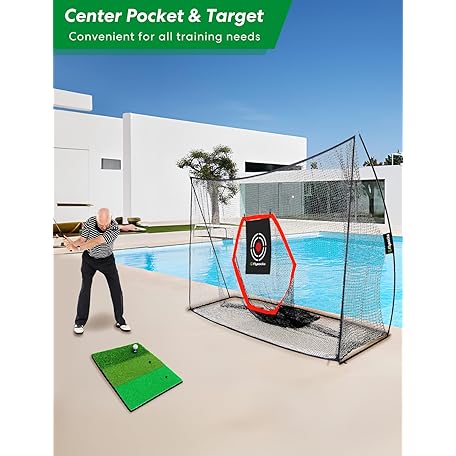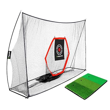 Thông tin sản phẩm Flysocks 10x7 ft Golf Practice Hitting Net with Mat, Center Target, 8 Balls, 9 Tees, 2 Pens, Backyard & Indoor Outdoor Chipping Training