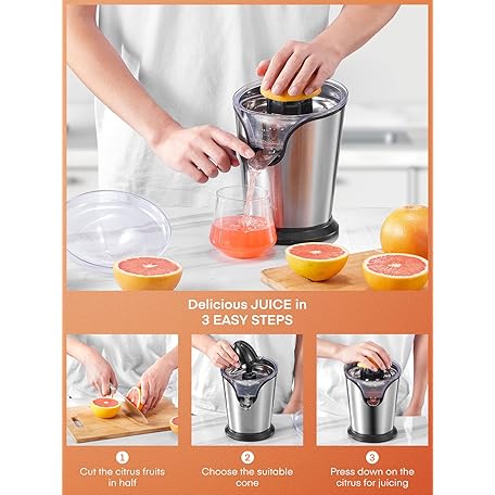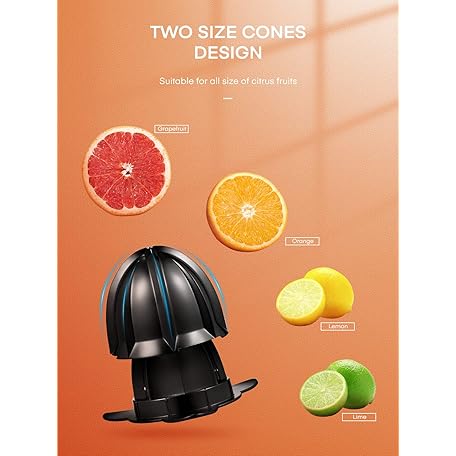 Thông tin sản phẩm FOHERE Orange Juicer Squeezer Electric Citrus Juicer with Two Interchangeable Cones Suitable for orange, lemon and Grapefruit, Brushed Stainless Steel