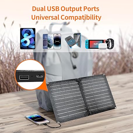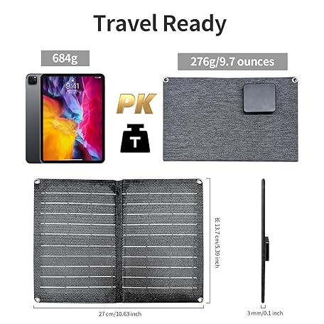 Thông tin sản phẩm Foldable Solar Panel, 10W Portable Solar Charger with Dual USB Outputs 25% High Conversion Efficiency Solar Panels, Solar Controller for Portable Power Station, Power Bank, Phone, Laptop, Camping