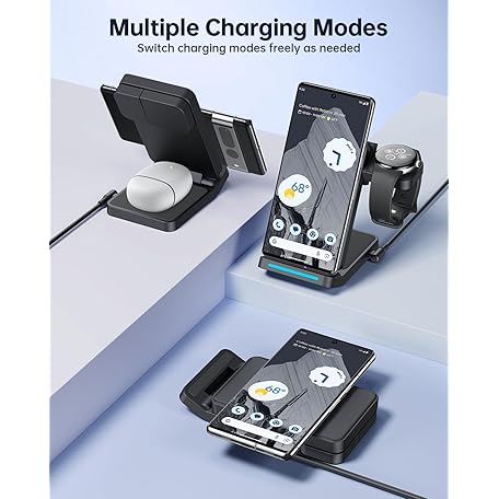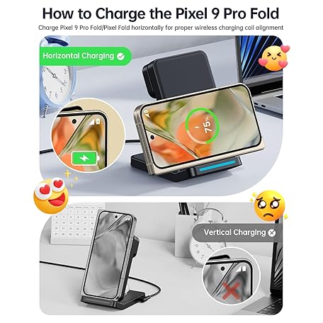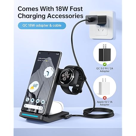 Thông tin sản phẩm Foldable Wireless Charger for Google Pixel Watch 3/2, 3 in 1 Fast Charging Station Stand for Pixel 10 Pro XL/10 Pro/9/8/7 Pro/8a/8/7/6 Pro and Buds (Not for Pixel Watch 4/1) with QC Adapter