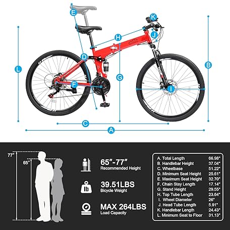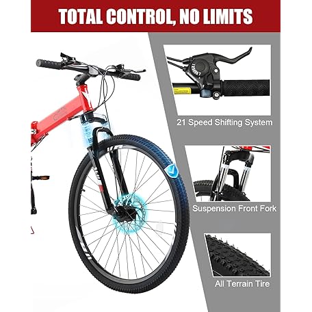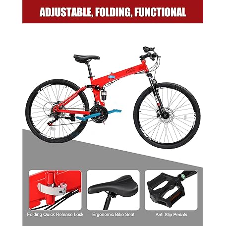 Folding Mountain Bike, 26/27.5" Women's & Men's Bicycle, 21 Speed Foldable Bike for Adults with Dual Suspension, Dual Disc Brake, Adjustable Saddle & Precision Twist Shifting