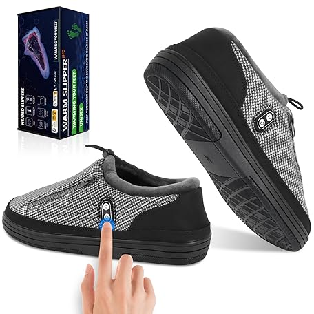 Foot Warmer, Kamlif Free-Moving Heating Pad Heated Slippers for Men Women, Rechargeable Electric Shoes Indoor House Shoes Plush Slip Outdoor Camping Feet Warmer with 5000 mAh Battery