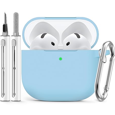 for AirPods 4 Case Cover 2024 with Cleaner Kit,Soft Silicone Protective Case for Apple AirPods 4th Generation Case for Women Men,AirPod 4 Case Accessories with Keychain-Sky Blue