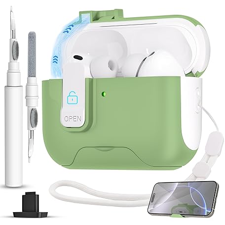 for AirPods Pro 3 Case(2025) with Secure Lock Clip, Automatic Pop-up Full Drop Protective Hard Cover for Apple AirPod Pro 3rd Generation with Lanyard & Cleaning Kit (Light Green-B)