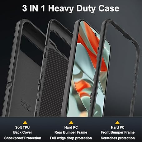 for Google Pixel 9 Pro XL Case with 2Pcs Tempered Glass Screen Protector and 1Pcs Camera Lens Protector, Military Grade 3 in 1 Heavy Duty Shockproof/Drop Proof/Dust Proof Case (Black/Black)