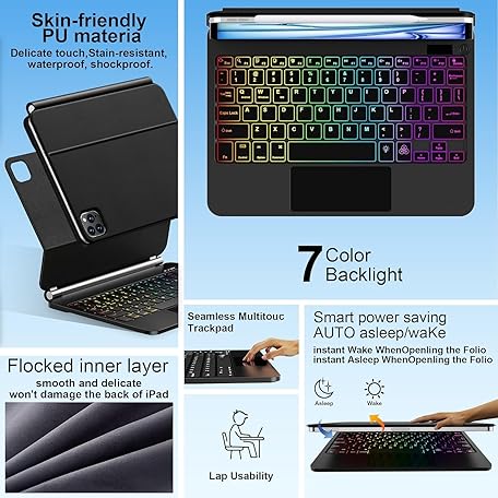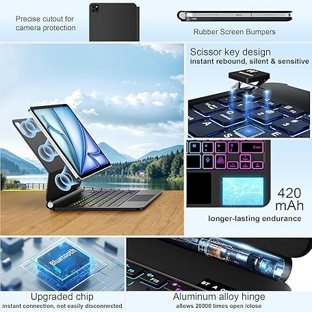for iPad Air 11 inch Case with Keyboard (M3/M2, 2025/2024), iPad Pro 11 (4th/3rd/2nd/1st Gen) & Air 5/4th,Magic-Style Magnetic – Floating Cantilever Stand - Multi-Touch Trackpad (Black)