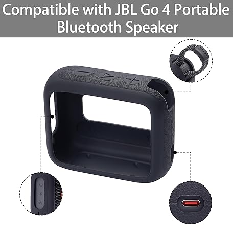 Thông tin sản phẩm for JBL Go 4 Waterproof Bluetooth Speaker Silicone Cover Case, Portable Silicone Travel Case with Carabiner, Protective Skin Case (Black Case) - co2CREA