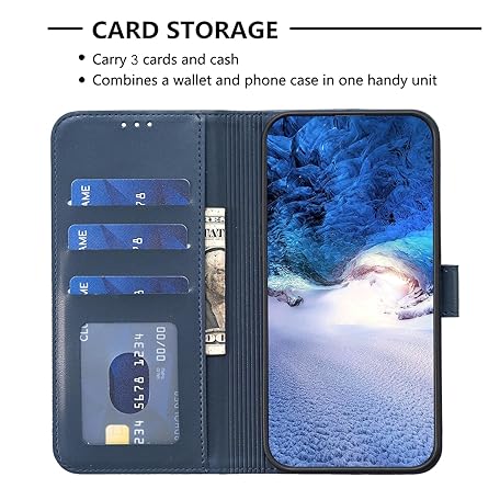 for Oppo A15, Wallet Case with 3 Card Solts 1 Cash Slot,PU Leather Flip Shockproof Kickstand Phone Case Compatible with Oppo A15 4G 6.52 inch (Blue)