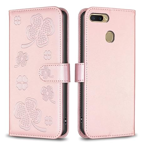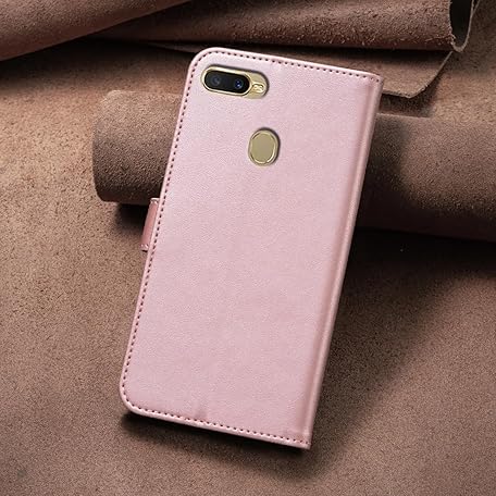 for Oppo A7, Wallet Case with 3 Card Solts 1 Cash Slot,PU Leather Flip Shockproof Kickstand Phone Case Compatible with Oppo A7 4G 6.2 inch (Pink)